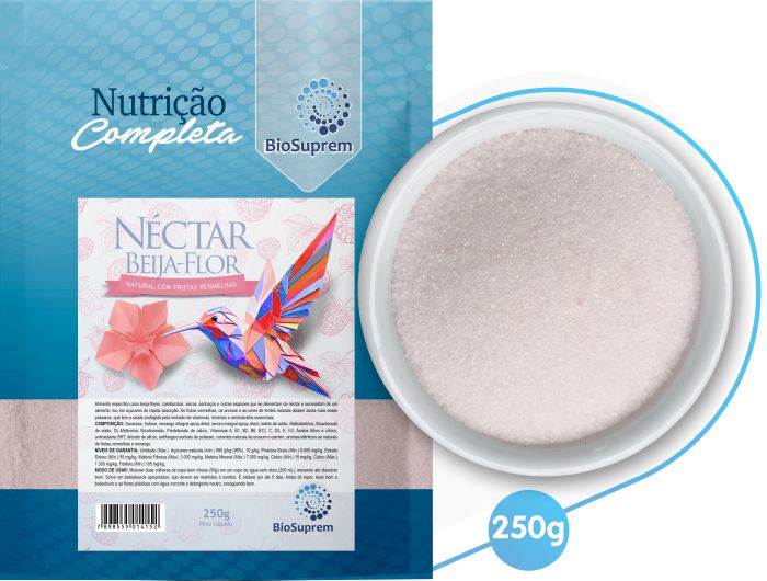 Alimento específico para beija-flores, cambacicas, saíras, sanhaços e outras espécies que se alimentam de néctar e necessitam de um alimento rico em açúcares de rápida absorção.